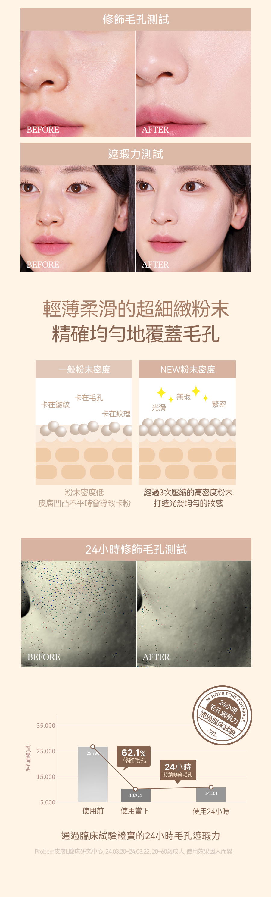 ☀️【零卡粉 完美遮蓋毛孔】 三重壓縮粉末粒子 超細緻貼服